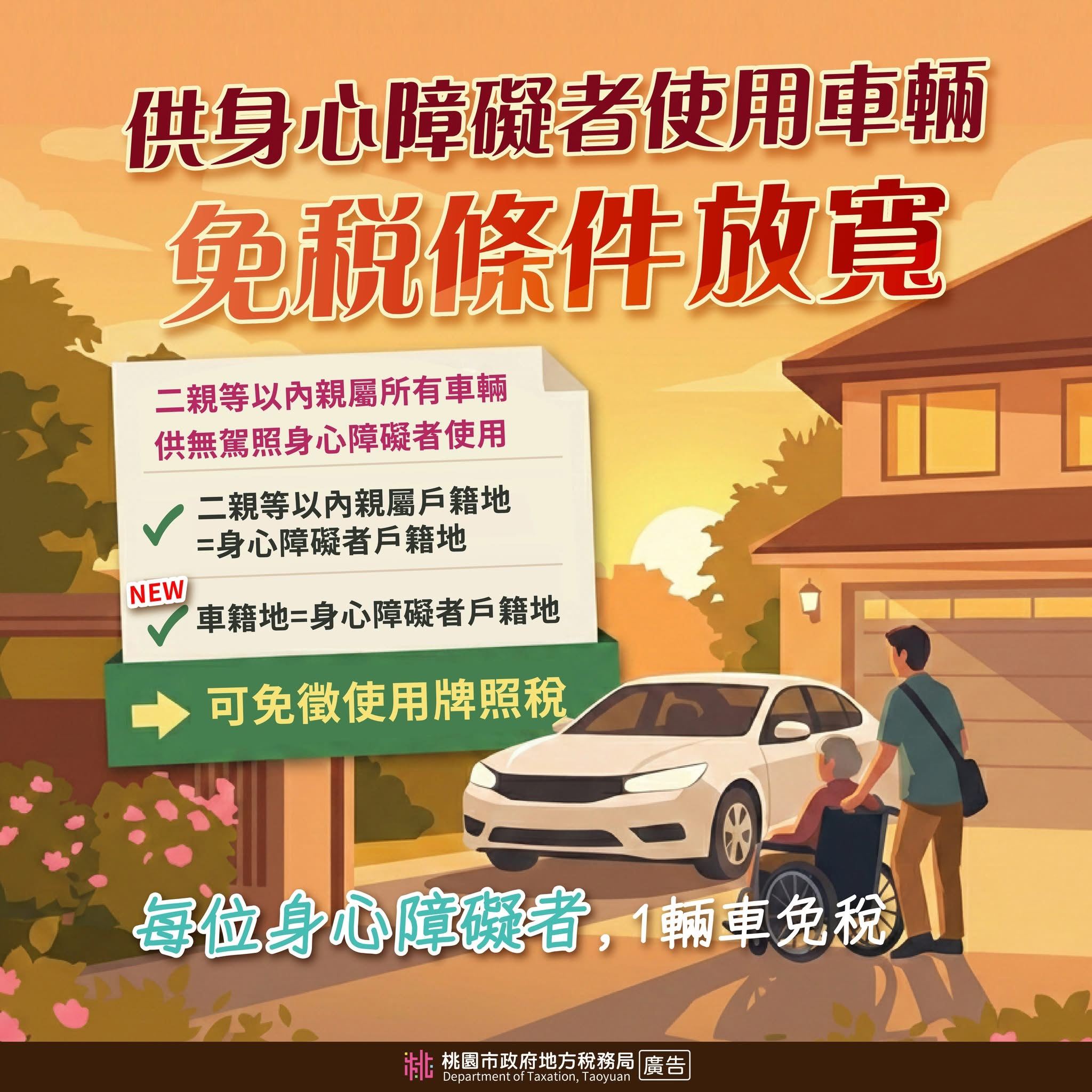 供身障者使用車輛,免徵使用牌照稅條件再放寬!